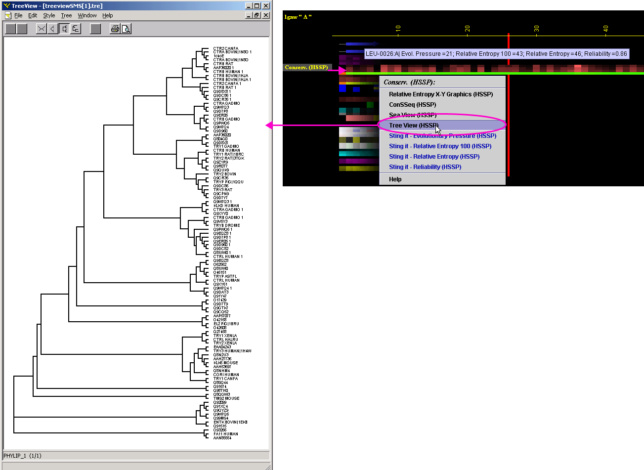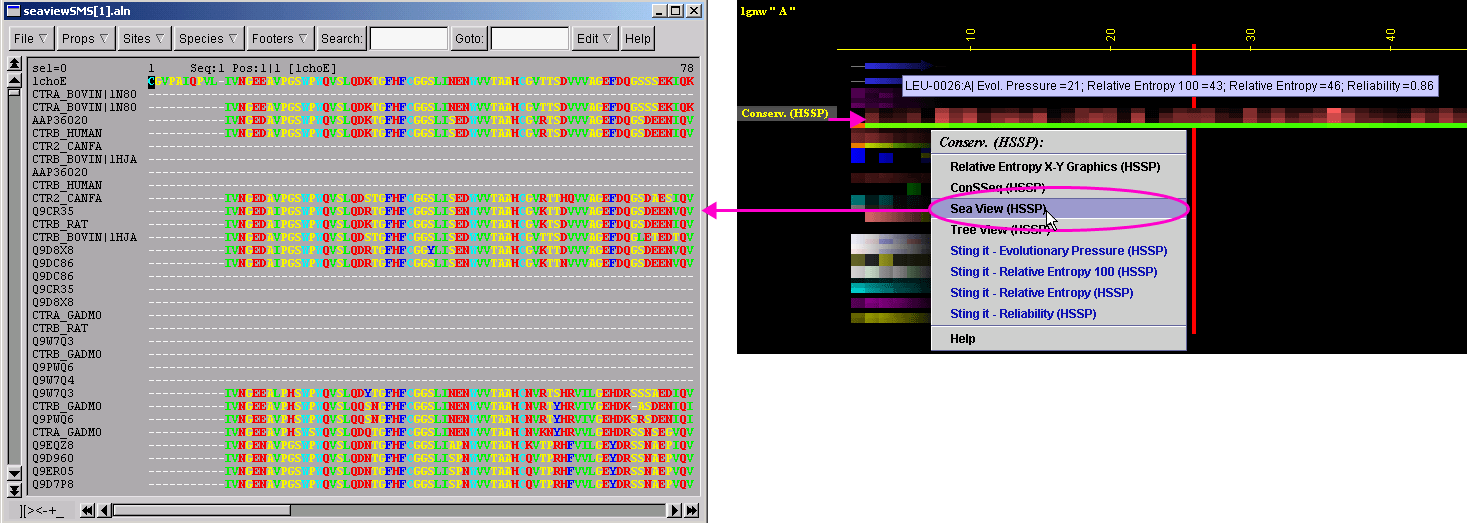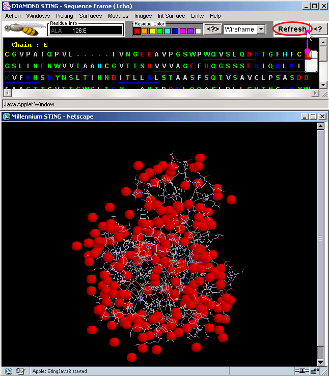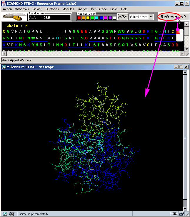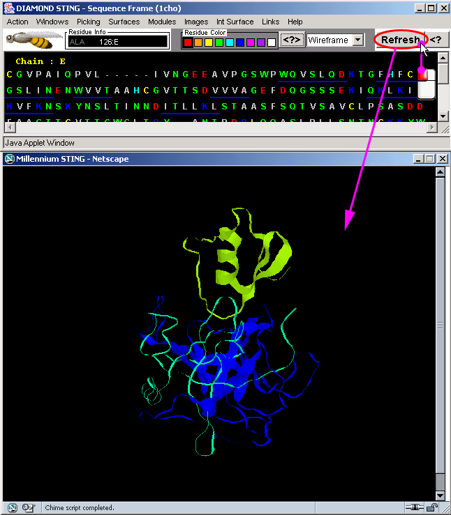 STING - Sequence Frame" for 1cho (default PDB file used by STINGit