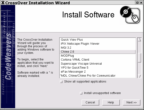 5.3 - Choose "Chime" as the plugin to be installed on Crossover.